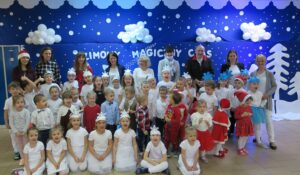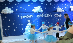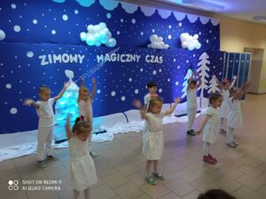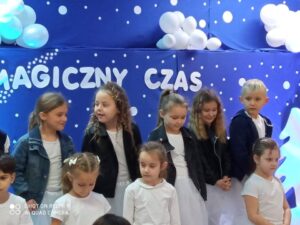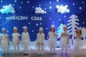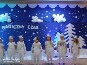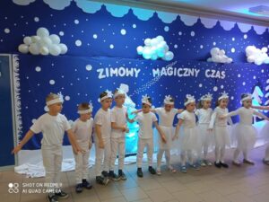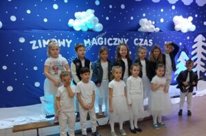 Zima to piękna pora roku. Magię zimowego klimatu podkreśla skrzący mróz i padający za oknem śnieg. Taka właśnie pogoda dopisała przedszkolakom dnia 22.12.2021 r. Pod takim hasłem „Zimowy magiczny czas” dzieci wzięły udział w przeglądzie piosenki zimowej, zorganizowanym w naszej szkole. Wszystkie grupy przedszkolne zaprezentowały swoje talenty wokalne i taneczne. Przedszkolaki odczuwały radość z możliwości zaprezentowania swoich umiejętności innym kolegom i koleżankom. Można było poczuć klimat zbliżającej się świątecznej atmosfery. Liczymy na kolejne takie spotkania.