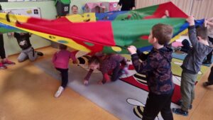 Aktywność fizyczna jest jedną z podstawowych wrodzonych potrzeb człowieka i powinna być nieodłącznym elementem codziennego życia. Podczas zabaw i gier ruchowych przedszkolakom dzielnie towarzyszyli rodzice, którzy tego dnia mogli przyjść do przedszkola.