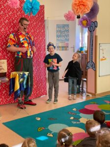 Dnia 12.04.2022 r. do naszego przedszkola zawitał przedstawiciel teatru iluzji