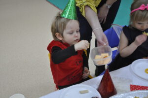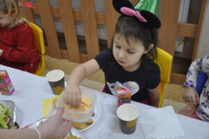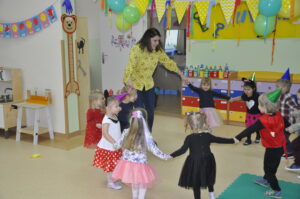 27 listopada 2020r. przedszkolaki z oddziału 3-latków „Krasnale” brały udział w swojej pierwszej przedszkolnej zabawie – Zabawie Andrzejkowej. Były kolorowe dekoracje, magiczne przebrania, tańce przy piosenkach z repertuaru dziecięcego, andrzejkowe wróżby i pyszny poczęstunek. Szczęśliwe dzieci bardzo chętnie skorzystały z możliwości odpoczynku poobiedniego – poimprezowe zmęczenie dosięgło wszystkich.