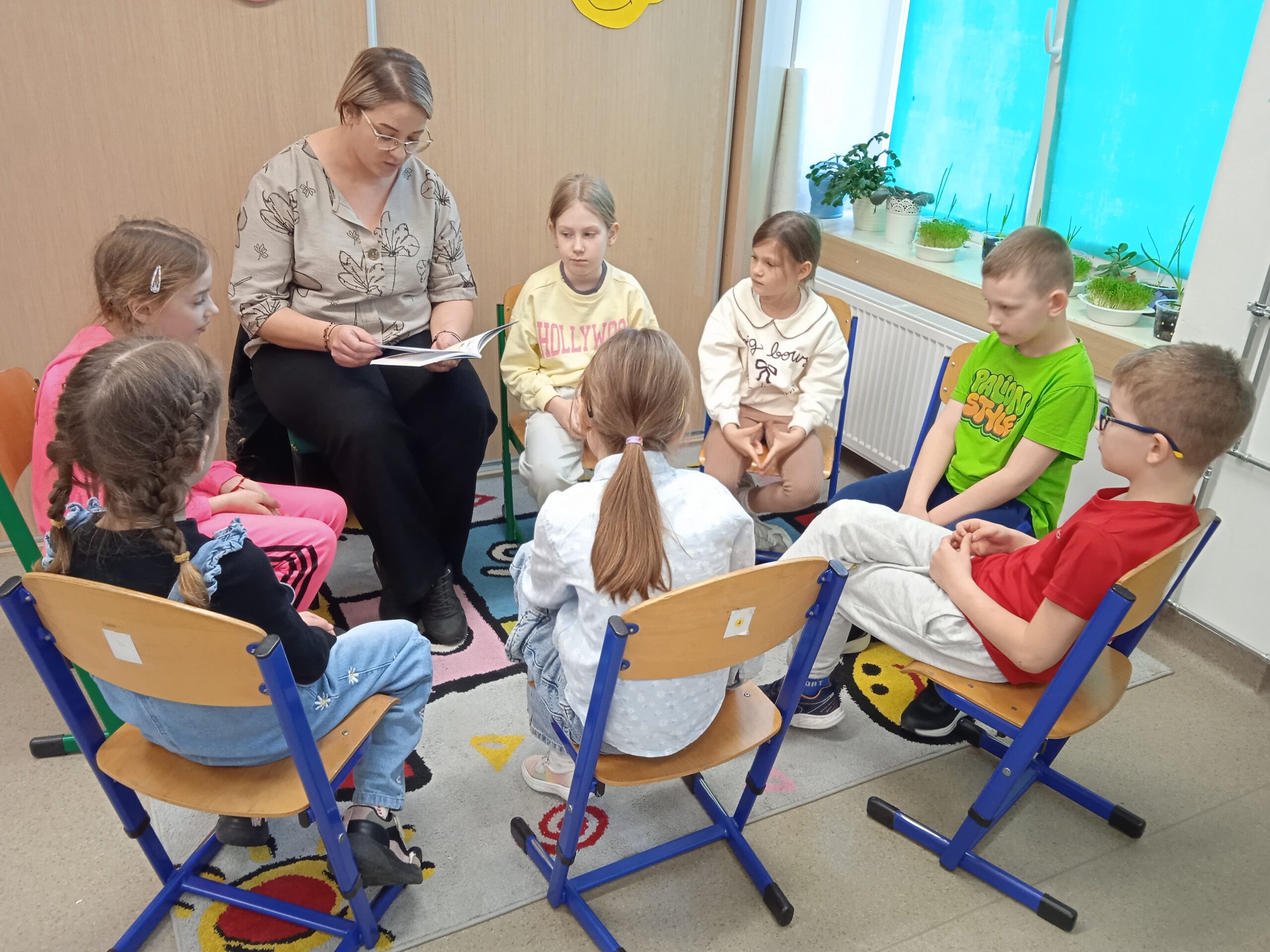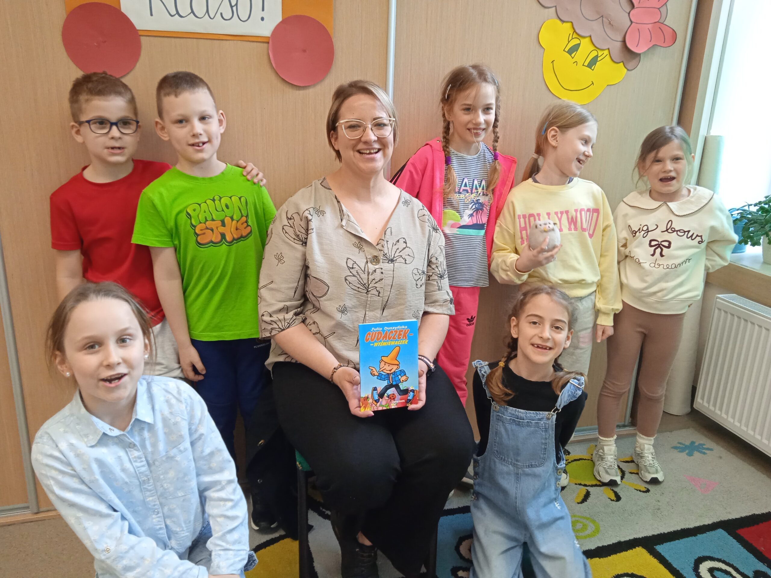 Gościem marcowych zajęć czytelniczych w klasie 1a była mama Kingi, która przeczytała fragmenty książki „Cudaczek-Wyśmiewaczek”. Dzieci z dużym zainteresowaniem słuchały opowieści o postaci pana Złośnickiego, która stała się punktem wyjścia do ważnej rozmowy o emocjach – zwłaszcza o złości. Uczniowie zastanawiali się, czym jest złość, kiedy się pojawia i czy jest potrzebna. Pierwszoklasiści dzielili się swoimi doświadczeniami i pomysłami na to, jak można wyrażać ją w bezpieczny i akceptowalny sposób. Zajęcia były nie tylko okazją do rozwijania umiejętności czytelniczych, ale także do nauki empatii, zrozumienia siebie i innych oraz budowania pozytywnych relacji w grupie.