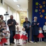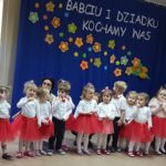 Tuż przed feriami (23.01.) w grupie „Żabek odbył się Dzień Babci i Dziadka. Wnuczęta przygotowały z tej okazji występ artystyczny oraz wręczyły przygotowane wcześniej prezenty. Babcie i Dziadkowie naszych „Żabek” mieli okazję cofnąć się pamięcią do własnych przedszkolnych lat – bawiły się z dziećmi w znane Im zabawy integracyjne (m.in. „Ole ole Janko”, „Różyczka”). Zabawa wywołała uśmiech na twarzy nie tylko u najmłodszych, ale i wśród zaproszonych gości. Zakończeniem uroczystości był słodki poczęstunek przygotowany przez rodziców.