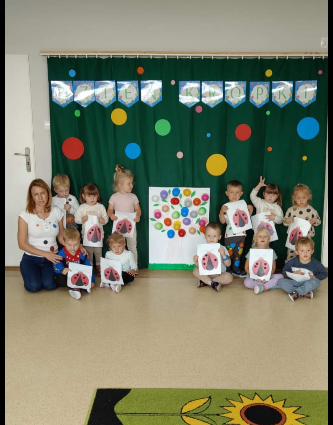 W dniu tego święta dostrzegaliśmy kropki tam, gdzie wcześniej nikt na nie nie zwracał uwagi. Okazało się, że kropki towarzyszą nam w naszym codziennym życiu: są w kropkach biedronki, na piłce , nasza sala jest w kropki…
