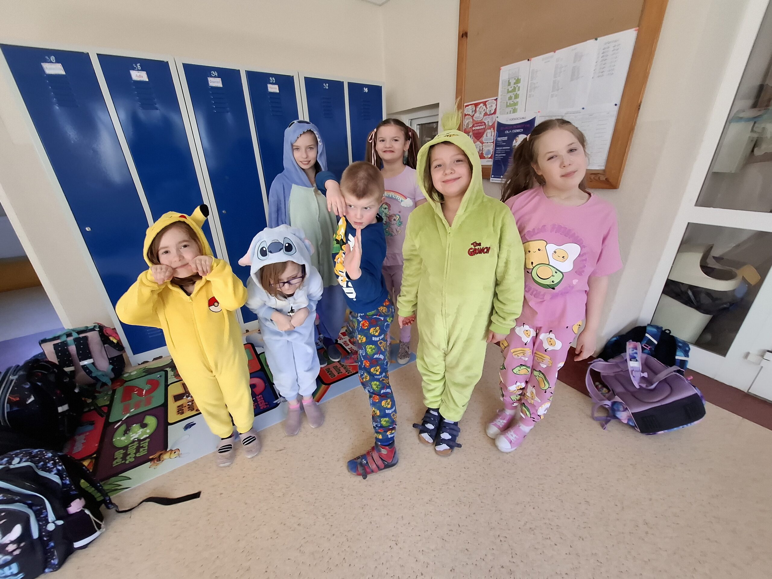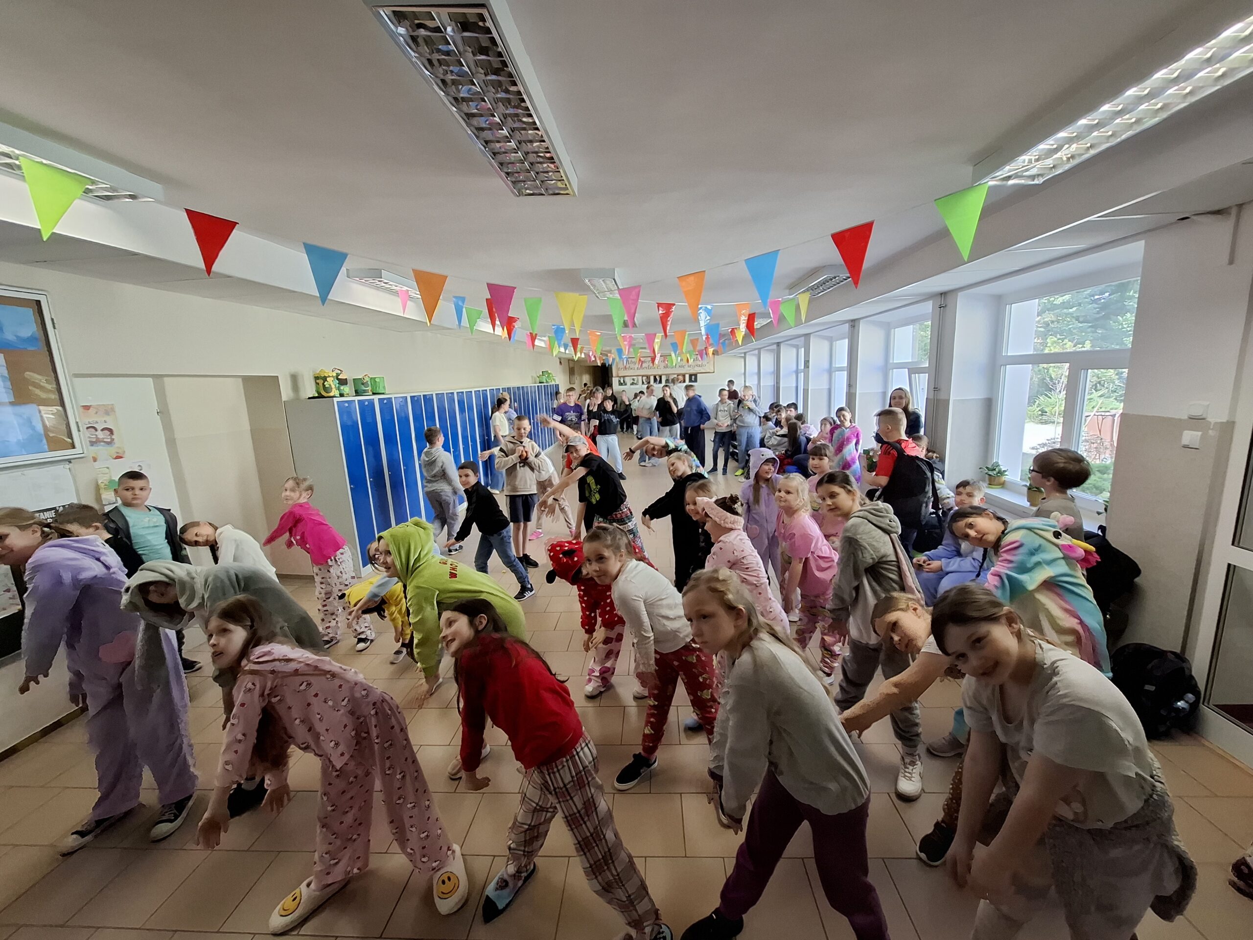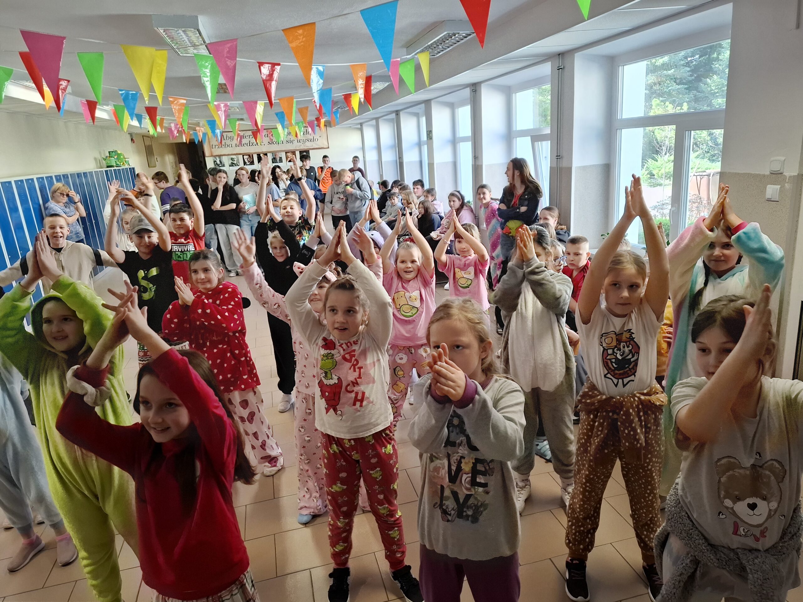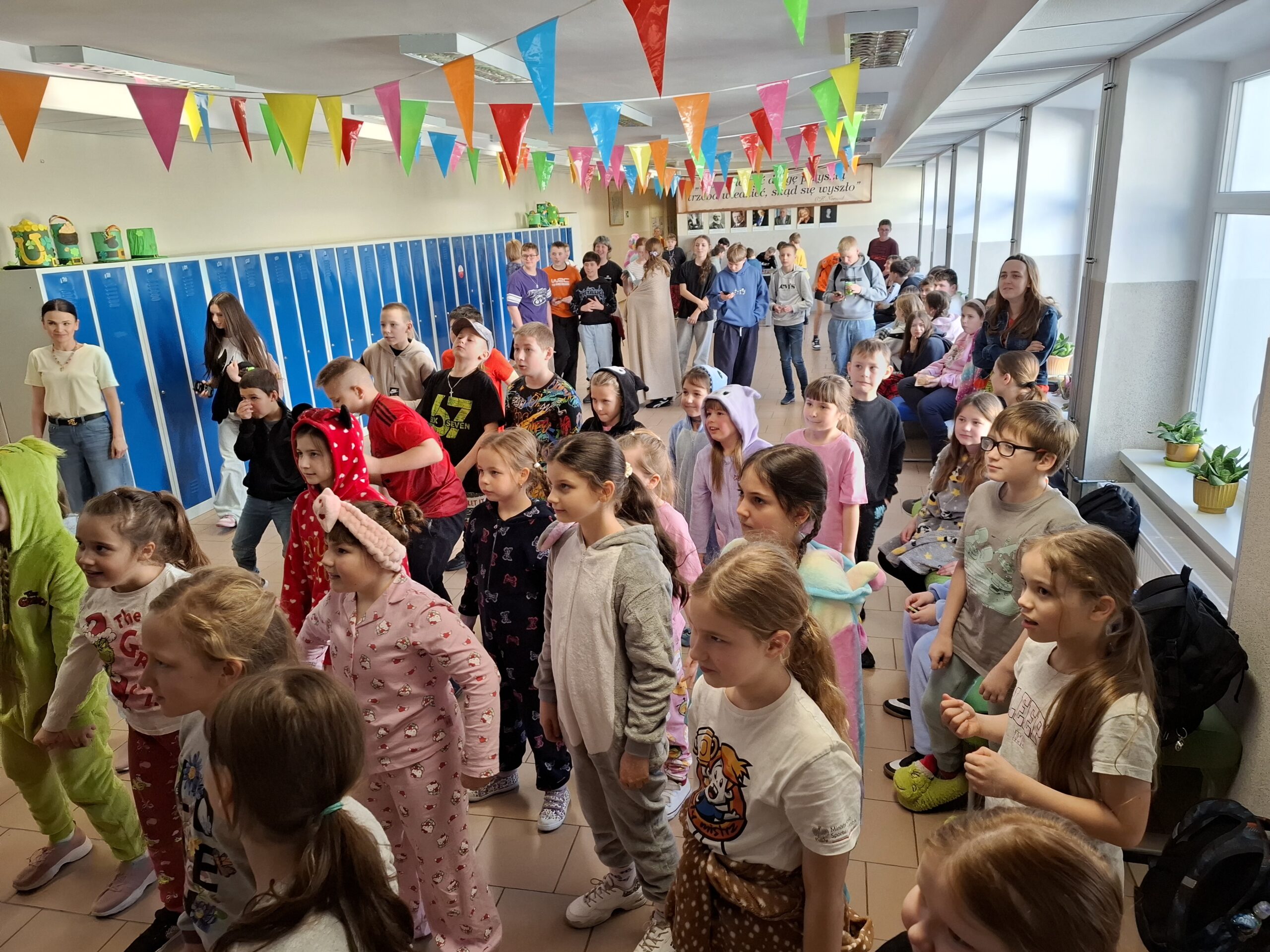 Pierwszy Dzień Piżamy w naszej szkole okazał się wyjątkowym i pełnym radości wydarzeniem. Uczniowie przyszli ubrani w kolorowe piżamy, szlafroki i kapcie, wprowadzając do szkolnych korytarzy swobodną, przyjazną atmosferę.