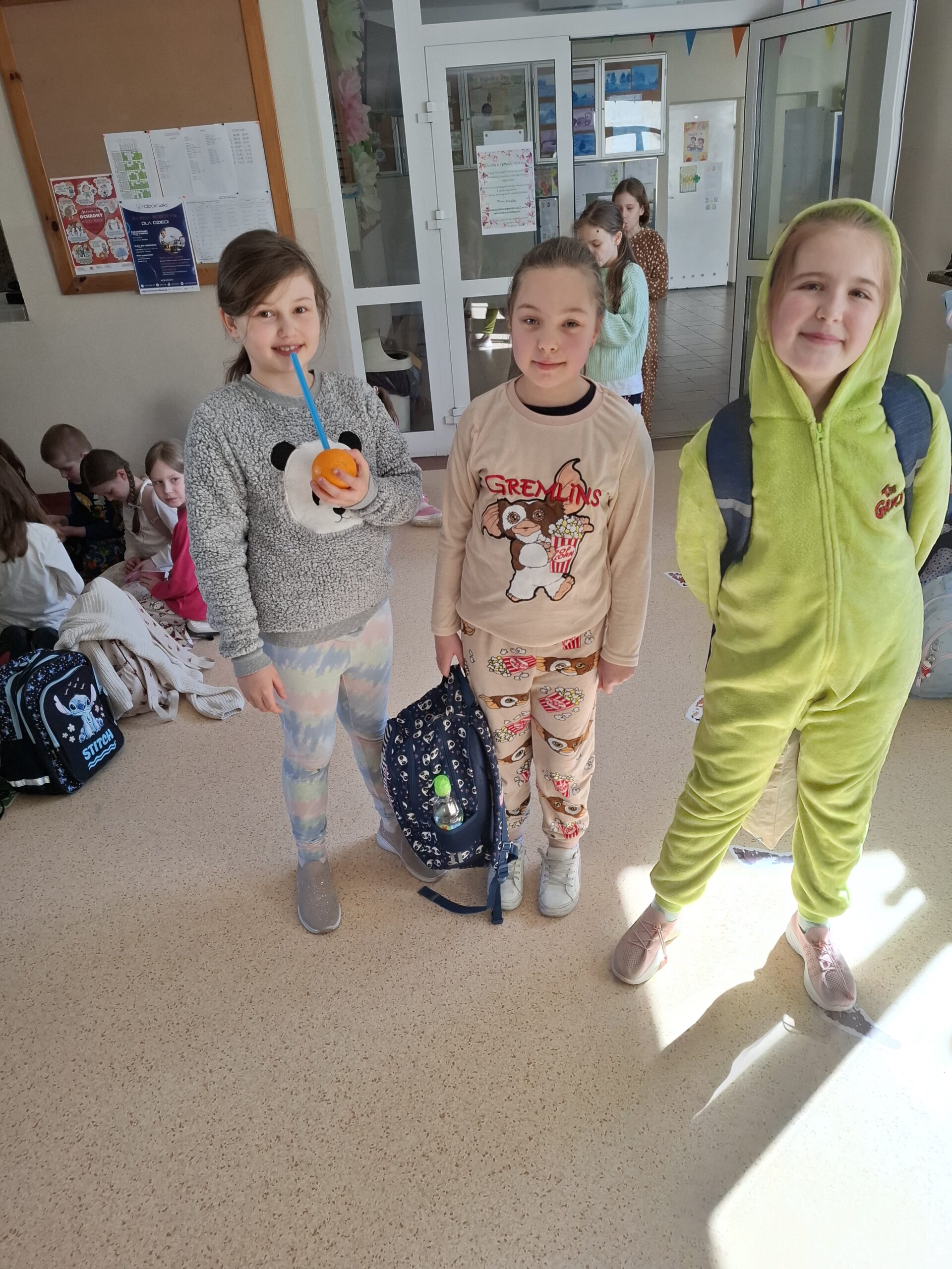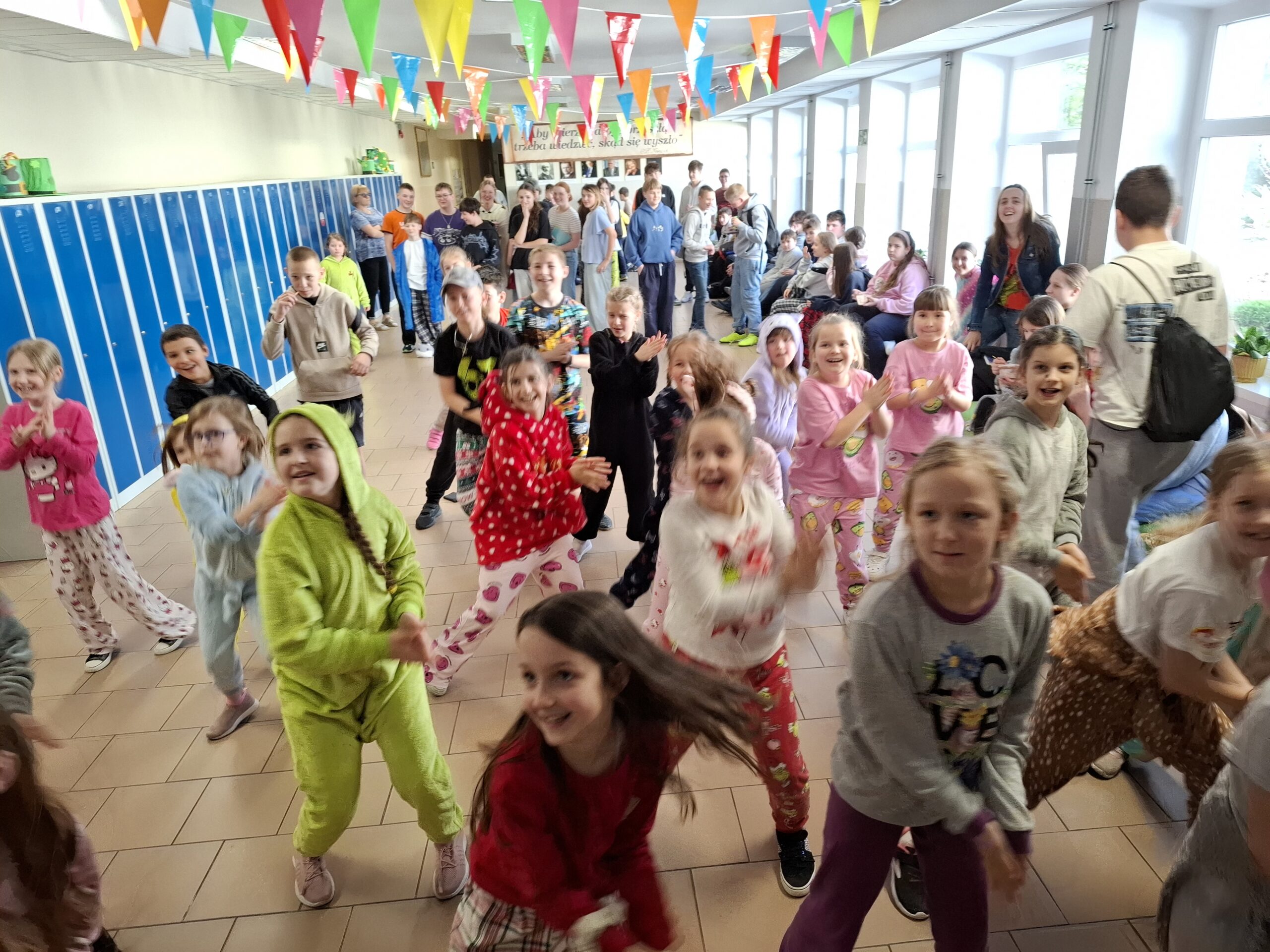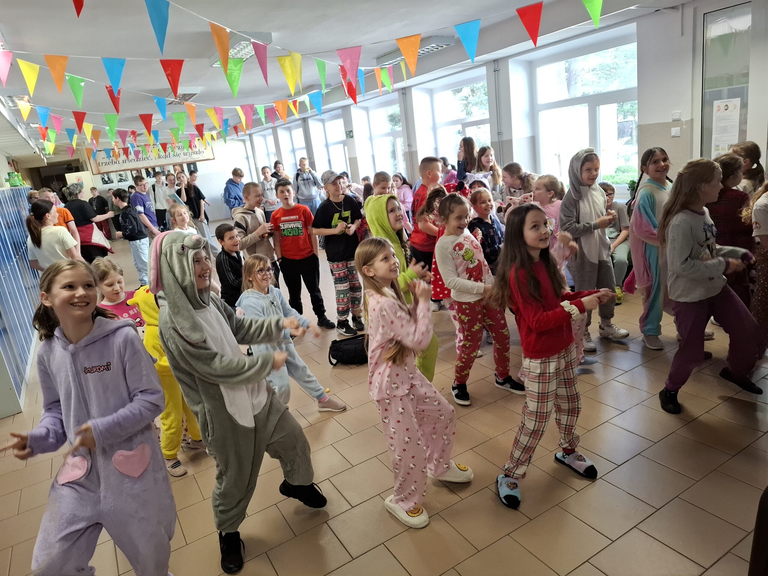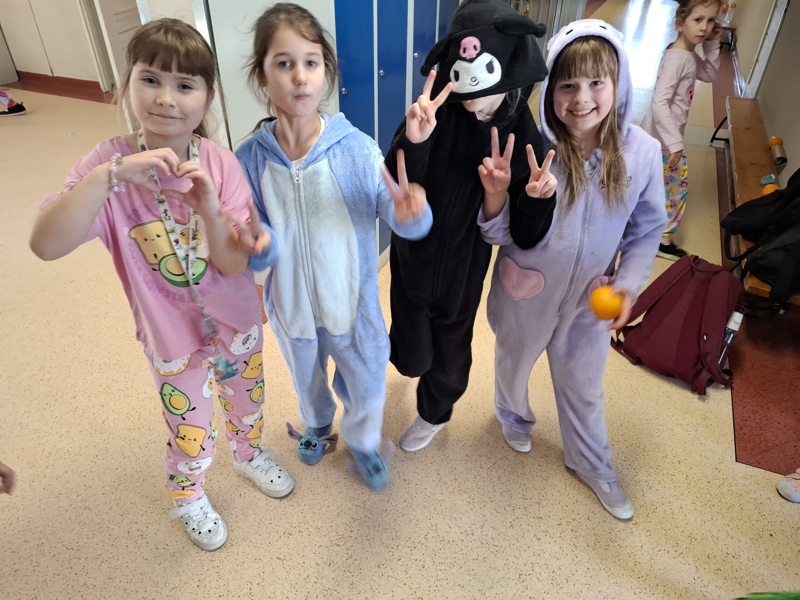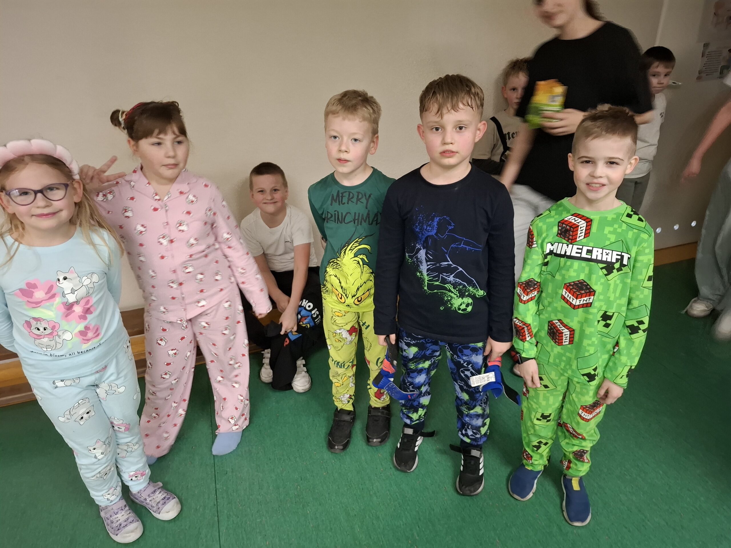Pierwszy Dzień Piżamy w naszej szkole okazał się wyjątkowym i pełnym radości wydarzeniem. Uczniowie przyszli ubrani w kolorowe piżamy, szlafroki i kapcie, wprowadzając do szkolnych korytarzy swobodną, przyjazną atmosferę.