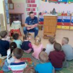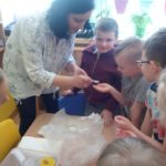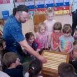 Dnia 20.04.2018 r. grupa 6-latków w nietypowy sposób obchodziła Dzień Ziemi. Był to bardzo szczególny dzień ponieważ przedszkolaki gościły u siebie przedstawicieli z Zielonej Farmy. Zaproszeni goście w ciekawy sposób opowiadali o życiu pszczół, które są bardzo ważne dla naszej planety. Dzieci miały okazję dowiedzieć się wielu ciekawych informacji na temat  tych zwierząt, poczuć się jak prawdziwi pszczelarze przymierzając strój pszczelarza oraz zbudować ul. Mieli również okazję skosztować różnego rodzaju miodu i własnoręcznie wykonać świeczkę z wosku pszczelego.