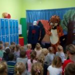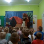 Dnia 22.10.2018 r. już po raz kolejny dzieci z wszystkich oddziałów przedszkolnych gościły u siebie aktorów z teatru AMUZADO. Tym razem było to przedstawienie, w którym poprzez interaktywną zabawę autorzy starali się przypomnieć dzieciom o ich najważniejszych prawach i obowiązkach. W widowisku pojawiały się elementy tematyki bezpieczeństwa ruchu drogowego, podstawowej wiedzy na temat zasad udzielania pierwszej pomocy w nagłych wypadkach, jak i treści pouczające widzów, jak się zachować w kontaktach z nieznajomymi. Główny bohater – Ryś Ryszard Chronicki zwracał uwagę Małym Widzom na ewentualne niebezpieczeństwa, z którymi mogą się oni zetknąć podczas codziennych powrotów ze szkoły do domu. Na podstawie bezpośrednich przykładów wplecionych w kanwę widowiska, aktorzy pokazali dzieciom, jak zachować się, gdy ktoś obcy puka do drzwi domu, co zrobić, gdy nieznajomy zaprosi dziecko do siebie, obiecując jakieś atrakcje itp.
