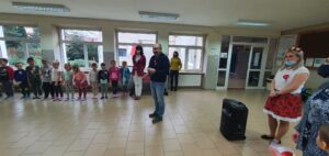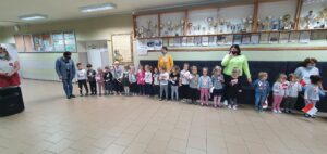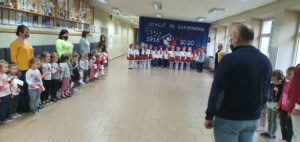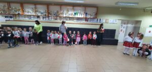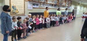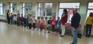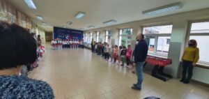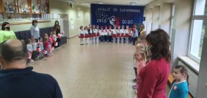 O godzinie 11:11 wszystkie przedszkolaki spotkały się na głównym holu, aby wspólnie uczestniczyć w akcji organizowanej przez Ministerstwo Edukacji Narodowej „Szkoła do hymnu”. Przedszkolaki w odpowiedniej postawie odśpiewały Hymn Polski.