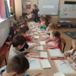 plastycznych z Panią Angelą Kleist w ramach II edycji Międzynarodowego Projektu Edukacyjnego „Piękna nasza Polska cała” . Dzieci miały okazję zapoznać się z różnymi technikami plastycznymi, doskonalić  sprawność manualną oraz czerpać radość z wykonywanej pracy.  Przedszkolaki bardzo chętnie i z dużym zaangażowaniem realizowały powierzone im   zadania. Robiły biedronki, kwiaty polne z papieru, wykonały wiosenne drzewo, jak również Panią Wiosnę. Na zakończenie malowały farbami akrylowymi przepiękne wiosenne łąki. Na pewno tak miło spędzone chwile zachęcą  dzieci do wyrażania  siebie poprzez aktywność plastyczną.